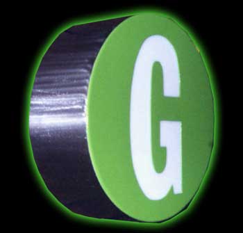 Comments...The idea for this piece came about after making the "Subway Crash" piece. The piece has a light inside it and the white of the letter lights up. The "G" shown was the first one made but I can make any of the NYC subway lines.