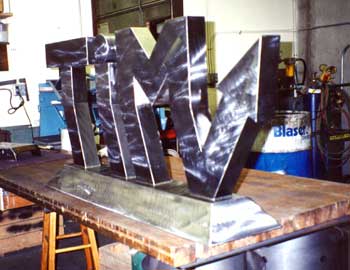 Title...Tim Size...2.5ft tall and 5ft long. Medium...18g. sheetmetal Year...Feb. of 2001 Comments...This is the first piece I made. It was made for a good friend of mine, Diet HTK, END